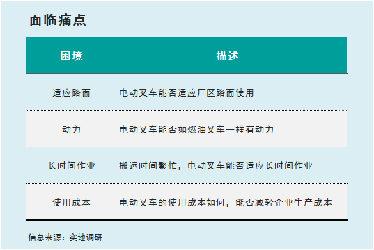 對(duì)陶瓷行業(yè)而言,壓力不僅來自市場(chǎng)銷售,成本高啟,還有環(huán)保問題。該企業(yè)同樣存在這樣的難題,一邊要承受市場(chǎng)的壓力,一邊要綠色生產(chǎn),推動(dòng)技術(shù)和設(shè)備的更新升級(jí)。在該企業(yè)決定改變以燃油叉車為主要搬運(yùn)設(shè)備時(shí),也考慮了很多問題。